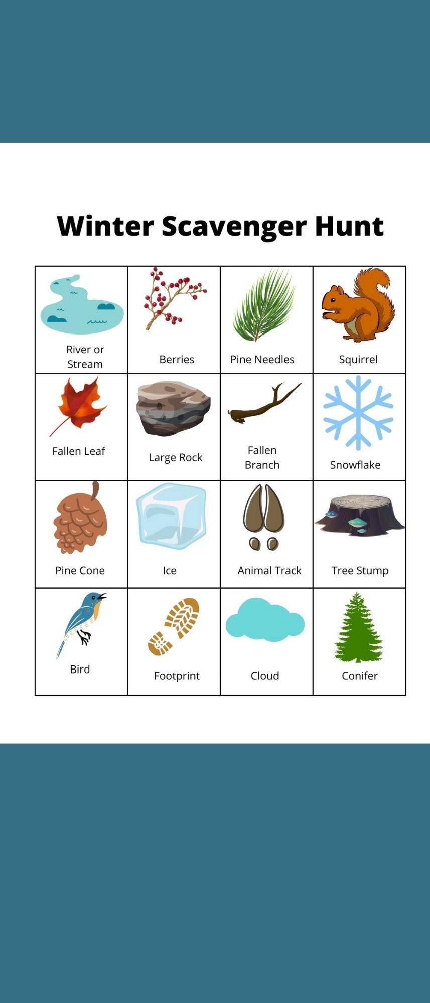 It can be hard to find ways to get outside and active in the winter. Use this printable scavenger hunt to get kids outside and engaged, whether it is out in the woods on a hike or around your neighbourhood!